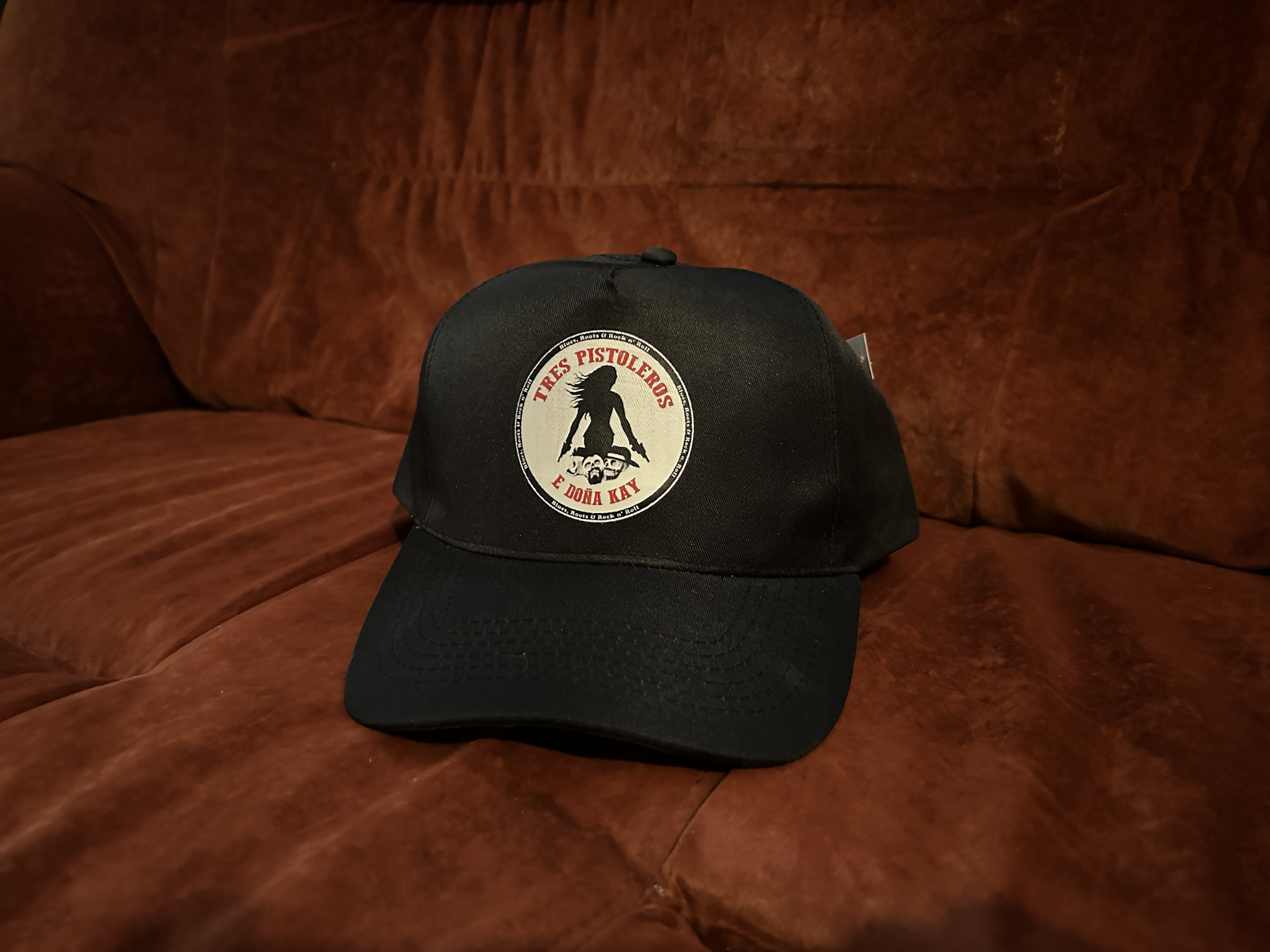 Musta lippalakki logolla.